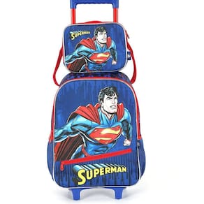 Kit Mochila Lancheira Luxcel SuperMan Azul Forte - Único-Azul