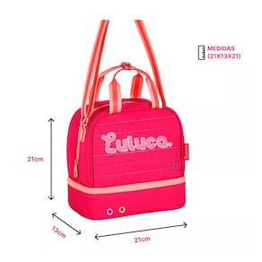 - LANCHEIRA: Compartimento térmico para manter alimentos e bebidas frescos. Alça de mão reforçada e alça transversal ajustável para facilitar o transporte. Compacta, mas com espaço suficiente para potes, sucos e lanches.