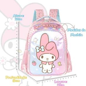 Kit Mochila My Melody Costas E Estojo Triplo Meninas Escolar - Up4YOU - Luxcel O Kit Mochila de Costas My Melody + Estojo Triplo é perfeito para a rotina escolar, o kit traz a mochila de costas com amplo espaço para materiais e o estojo triplo para manter tudo organizado. Com estampa fofa da My Melody, é ideal para meninas que buscam praticidade, conforto e muito estilo no dia a dia. Características Mochila: - Pega de Transporte Manual - Bolso Lateral Telado Mesh com brilho - Bolso Frontal Utilitário com estampa - Zíper com Puxadores Personalizados - Logo em alto relevo - Estampa no cetim e personagem em aplique de PVC com glitter Características Estojo: - 3 compartimentos - Forro interno em Poliéster - Material acetinado - Zíper com puxadores personalizados - Estampa com personagens temáticos Especificações Mochila: - Marca: Luxcel - UP4YOU - Material: 70% Poliéster e 30% PVC - Forro: Poliéster - Medidas Aprox. axlxp : 41cm x 31cm x 15cm - Tema: My Melody - Cor: Rosa - Capacidade Aprox. litros : 19 litros - Polegadas da mochila: 16 Especificações Estojo: - Marca: Luxcel - Material: 70% Poliéster e 30% PVC - Forro: Poliéster - Medidas Aprox. axlxp : 11cm x 22cm x 8cm - Tema: My Melody - Turma da Hello Kitty - Cor: Rosa - Capacidade Aprox. litros : 2 Litros Conteúdo da Embalagem: Is42441srm - 1x Mochila de Costas My Melody - Luxcel - UP4YOU Ei42445srm - 1x Estojo Triplo My Melody Luxcel As cores podem variar entre as imagens mostradas acima e o produto. Imagens meramente ilustrativas. Todas as informações divulgadas são de responsabilidade exclusiva do fabricante. de 90 dias contra defeito de fabricação