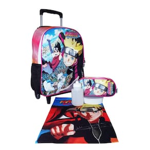 Lindo Kit mochila escolar de rodinhas do Boruto, excelente opção para utilizar no dia a dia escolar pois além de um design único, é produzido com material resistente, confortável e de alta durabilidade. Possui um compartimento principal com espaço suficiente para cadernos, livros e acessórios, bolsos laterais para garrafinhas e estojo espaçoso com 1 compartimento. Design único Material resistente e confortável Possui rodinhas Bolsos laterais para garrafinhas Produto oficial Medidas: Altura: 43cm Largura: 30cm Profundidade: 17cm Marca: Não Informado Ean: 7908827204676