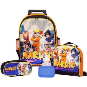 O kit contém:1 Mochila de carrinho TAM G: Com rodinhas de silicone e alças para as costas. Possui um compartimento central para cadernos e livros, um bolso frontal para objetos e dois bolsos nas laterais de telinha. É produzida com lona e poliéster, (material próprio para este tipo de produto.)1 Lancheira térmica: Produzida em lona poliéster, com alças para as mãos e costas, seu interior é feito de manta térmica que ajuda a manter os alimentos gelados ou quentes por mais tempo. Segue também um potinho e uma garrafinha . 1 Estojo: Produzido em lona poliéster, com 01 compartimento, do tamanho correto para guardar caneta, lápis e borracha em grande quantidade.Medidas aproximadas da Mochila: Altura: 40cmLargura: 30cmProfundidade: 14cmAltura com o puxador: 76cmMedidas aproximada da Lancheira: Altura:20cmLargura:21cmProfundidade: 7cm