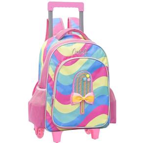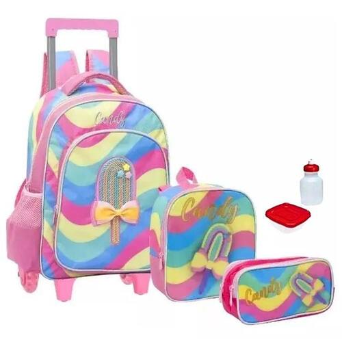 Kit Mochila Mochilete Infantil Meninas Picolé Candy Escolar Reforçada 2 em 1 Alças e Rodinhas Tamanho Grande Com Lancheira Térmica Garrafinha Potinho e Estojo Duplo