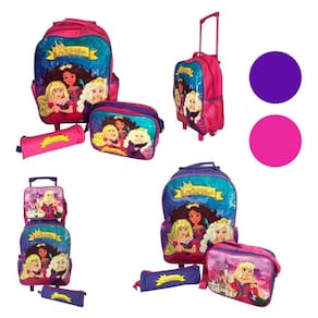 Kit Mochila Infantil Escolar Rodinha 3 Pçs Princesas Rosa