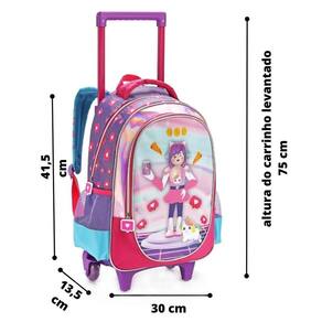 A mochila possui medidas de 41,5 x 30 x 13,5 cm e é feita de 100% Poliéster e 100% PVC. Além de um design moderno e feminino na cor Lilás, ela conta com bolsos laterais para garrafas, puxador personalizado, rodas de silicone e carrinho embutido. Para garantir ainda mais segurança, possui um identificador no verso e tiras aderentes para segurar a alça reguladora e evitar que arraste no chão. Com duas divisórias e alça de mão para auxiliar no transporte, é a opção perfeita para carregar todos os seus pertences de forma organizada.