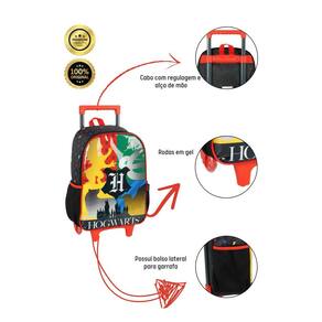 Mochila: Confeccionada em Poliéster Fechamento em zíper Puxadores personalizados Compartimentos espaçosos 2 bolsos laterais para garrafa Possui RODAS e ALÇA DE MÃO Design exclusivo Etiqueta de identificação na parte traseira Medidas aproximadas: Altura:40 cm Largura:30 cm Comprimento: 15 cm