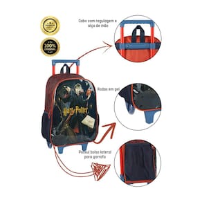 Mochila: Confeccionada em Poliéster Fechamento em zíper Puxadores personalizados Compartimentos espaçosos 2 bolsos laterais para garrafa Possui RODAS e ALÇA DE MÃO Design exclusivo Etiqueta de identificação na parte traseira Medidas aproximadas: Altura:40 cm Largura:30 cm Comprimento: 15 cm