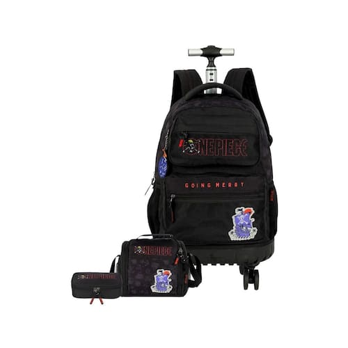 Kit mochila luxo 2em1 rodas + lancheira + estojo one piece