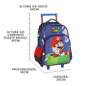 Kit mochila rodas super mario infantil lancheira estojo box - luxcel Apresentamos o incrível kit mochila de rodas super mario, que vem completo com lancheira e estojo box, perfeito para as aventuras escolares do seu filho com um design divertido que traz a icônica presença do super mario, este kit não é apenas estiloso, mas também super funcional. A mochila de rodas facilita o transporte, aliviando o peso nas costas e tornando o deslocamento muito mais prático. Características mochila: Alça de mão Bolsos laterais telados Chaveiro personalizado Identificador personalizado Puxador personalizado Características lancheira: Alças de costas Alça carona Alça de mão Identificador personalizado Puxador personalizado Compartimento térmico Características estojo: Divisória interna Elástico para 36 lápis Puxador personalizado Especificações mochila: Marca: super mario Medidas aproximadas mochila a x l x p : 41cm x 30cm x 14cm Peso: 815g aprox Capacidade: 17l Composição do produto: poliéster e pvc Especificações lancheira: Marca: super mario Medidas aproximadas lancheira a x l x p : 23cm x 19cm x 10cm Peso: 182g aprox Compartimento: térmico Composição do produto: poliéster e pvc Especificações estojo: Marca: super mario Medidas aproximadas estojo a x l x p : 22cm x 15cm x 6cm Peso: 150g aprox Capacidade: 100 pens Composição do produto: poliéster e pvc Conteúdo da embalagem: Ic41392mo - 1 mochila rodas super mario La41393mo - 1 lancheira térmica super mario Ei41394mo - 1 estojo box super mario As cores podem variar entre as imagens mostradas acima e o produto. Imagens meramente ilustrativas. Todas as informações divulgadas são de responsabilidade exclusiva do fabricante. de 90 dias contra defeito de fabricação. Marca: Não Informado