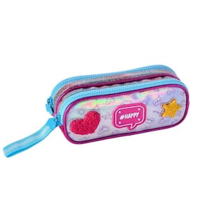 ESTOJO: possui dois compartimentos com amplo espaço interno, ideal para armazenar lápis, canetas e acessórios escolares. Puxadores personalizados e acabamento combinando com a mochila e lancheira.