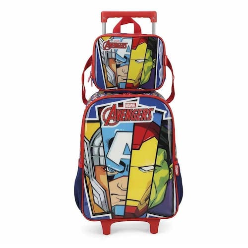 Kit Mochila Rodinha Alça Com Lancheira Vingadores Face Luxcel Kit mochila rodinha com alça + lancheira vingadores face luxcel tamanho: mochila - 41cm haste baixada/78cm com haste levantada x 30 cm x14cm lancheira - 22x17x8cm composição: poliéster e pvc detalhes da mochila; 2 bolsos laterais, 1 compartimento espaçoso com estampa em pvc de alta qualidade, 2 rodinhas, alças acolchoadas nas costas, puxadores de metal e uma alça de mão detalhes da lancheira: 1 compartimento espaçoso térmico, alça nas costas e alça de mão atenção: imagem meramente ilustrativa. Pode ocorrer mudanças no tom da cor para o produto real ou mudanças na embalagem sem aviso prévio por parte do fornecedor/fabricante Marca: Não Informado