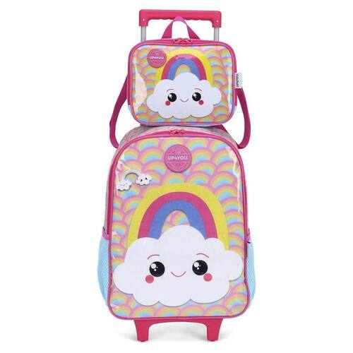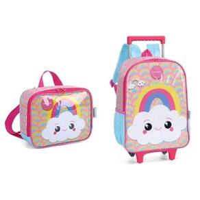 Kit mochila rodinha com alça com lancheira nuvem luxcel kit com mochila de rodinhas com bolsos laterias em tela com elástico, alças de costas espumadas e reguláveis, silk frontal, bolso frontal com zíper, alça de mão. Lancheira estampada com alça de costas e alça de mão, além de etiquetas personalizadas. Dimensões aproximadas: mochila 46 sem haste levantada/75 com haste levantada x 30 x 14cm axlxp / lancheira: 23 x 17 x 8cm lxaxp volume aproximado: mochila 17,5 litros / lancheira: 3,2 litros. Contém: 1 mochila e 1 lancheira atenção: imagem meramente ilustrativa. Pode ocorrer mudanças no tom da cor para o produto real ou mudanças na embalagem sem aviso prévio por parte do fornecedor/fabricante Marca: Não Informado Ean: 9990013170429