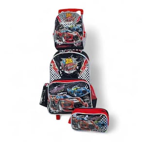 Kit Escolar Perfeito para Meninos - Mochila de Rodinhas, Lancheira e estojo duplo com estampa de carro. Deixe a volta às aulas ainda mais especial com este kit completo, funcional e encantador Mochila grande com Rodinhas Design colorido e bonito Rodinhas de silicone resistentes Alça retrátil ajustável Compartimentos amplos para caderno, agenda e estojo Medidas 17 20 L: 44 cm de altura x 30 largura x 15 cm comprimento/ lateral Material poliester CBFT9530 A Lancheira Térmica Material interno térmico mantém alimentos preservado Alça costa facilita o transporte Medidas: 25 cm altura x 19 cm largura x 14 cm comprimento/ lateral CBFT9530 B Estojo duplo Compartimento duplo com zípers medidas : 20 cm largura x 11,5 cm altura x 10 cm comprimento material : Poliester CBFT9530 C