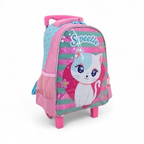 Kit Escolar Perfeito para Meninas - Mochila de Rodinhas, Lancheira e Bolsinha com estampa da gatinha mais charmosa. Deixe a volta às aulas ainda mais especial com este kit completo, funcional e encantador Mochila média com Rodinhas Design colorido e bonito Rodinhas de silicone resistentes Alça retrátil ajustável Compartimentos amplos para caderno, agenda e estojo Medidas 13 10 L: 34 cm de altura x 24 largura x 12 cm comprimento/ lateral Material poliester CBFT9520 A Lancheira Térmica Material interno térmico mantém alimentos preservado Alça costa facilita o transporte Medidas: 21 cm altura x 17 cm largura x 10,5 cm comprimento/ lateral CBFT9520 B Estojo duplo Compartimento duplo com zípers medidas : 21 cm largura x 9,5 cm altura x 8,5 cm comprimento material : Poliester CBFT9520 C Marca: Não Informado Ean: 7890488901042