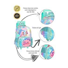 Kit Escolar Mochila De Rodinha+Estojo Box Barbie Holográfica: