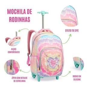 Kit de Mochila de Rodinhas inclui um estojo e uma lancheira com o mesmo design, perfeito para organizar lápis, canetas e outros materiais escolares, e uma lancheira que mantém a comida fresca e deliciosa. Sua filha vai adorar levar esse conjunto para a escola, tornando-se o destaque entre os colegas. Possui ótimo espaço interno para transportar livros e cadernos, mochila resistente para uso de dia dia