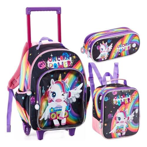 Kit Mochila Rodinha Infantil Estojo Lancheira