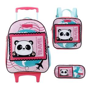 Os apaixonados por pandas irão se apaixonar por este kit a mochila conta com frente em pvc, puxadores de metal, alça de mão em nylon, 1 bolso para garrafa e rodinhas em gel. Lancheira com alça de mão em nylon, alça de costas ajustáveis, frente em pvc e etiquetas personalizadas. O estojo conta com frente em pvc e puxadores em metal, além de etiquetas personalizadas . Características principais: dimensões: mochila: 40 x 30 x 15cm / lancheira: 21 x 19 x 10cm / estojo: 9 x 21,5 x 5cm axlxp . Volume: mochila: 18 litros / lancheira 4 litros / estojo: 1 litro. Atenção: imagem meramente ilustrativa. Pode ocorrer mudanças no tom da cor da tela do celular/pc para o produto real ou mudanças na embalagem do produto sem aviso prévio por parte do fabricante. Ean: 9780613189392