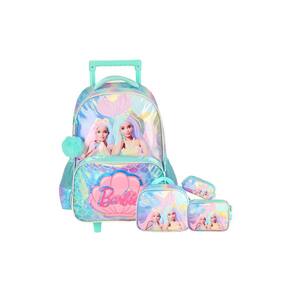 Kit Mochila Rodinha+Lancheira+Estojos Barbie Brilho - Verde