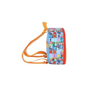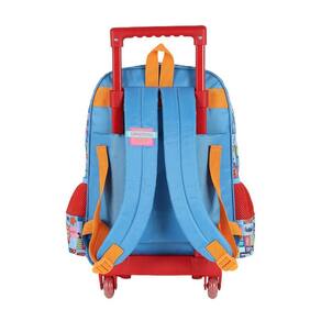 Kit mochila de rodinhas com bolsos laterias em tela com elástico, não possui alças de costas, silk frontal, alça de mão. Lancheira estampada com alça de costas e alça de mão, além de etiquetas personalizadas.