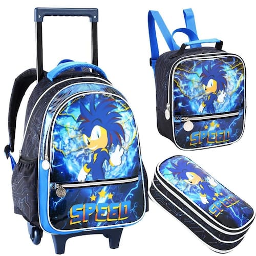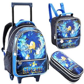 Kit mochila rodinha menino super sonic raio lancheira estojo