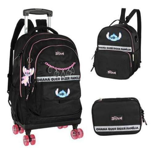 Kit Escolar Mochila com 04 Rodinhas Duplas com giros de 360º + Lancheira Térmica e Estojo 100 Pens, com compartimento para Notebook. O carrinho é feito em alumínio e as quatro rodinhas possuem giro 360, proporcionado leveza e facilidade ao transporte. Puxador com HASTE DUPLA, com botão para regular a altura. Ela também pode ser Utilizado nas costas pois possui alças ajustáveis e macias que se adaptam ao corpo. Vem com alça de mão fixa. Além de Contar com a novidade desse ano, o borrachão na parte da base que proporciona mais durabilidade e proteção do produto. A mochila é bastante espaçosa, perfeita para acomodar livros, ficheiros, cadernos e agenda. Na parte interna são duas divisões, com um compartimento para notebook. O compartimentos são fechados por zíper. - Carrinho em alumínio com HASTE DUPLA - Alça de costas acolchoada; - Alça de mão reforçada; - Um Logo Bordado e Outro Emborrachado - Chaveiro Pompom com orelhinhas - Mochila super leve e resistente; - Rodinhas Duplas Giros 360 - Medidas: 48x34x22 cm AxLxP Estojo super resistente e espaçoso, com capacidade máxima de 100 lápis. Ele possui dois compartimentos separados por uma divisória e vem com 20 elásticos, 10 de cada lado, para prender lápis e canetas em separado. Ideal para crianças e adolescentes levarem à escola e manterem os materiais separados e em ordem. Medida: 6x15x21 cm AxLxC Bolsa Lancheira Térmica, super-resistente; A lancheira é bastante espaçosa, perfeita para colocar potes com refeições e sanduíches, garrafas de água ou suco e frutas. Ideal para crianças e adolescentes levarem à escola ou adultos levarem para o trabalho, academia ou passeios ao ar livre. A lancheira contém uma alça regulável, que pode ser ajustada ou retirada quando necessário. Possui elástico na parte de trás, para acoplar em mochilas de carrinho. - Lancheira térmica super leve e resistente. - Alça regulável, com opção de retirada. - Fechamento em zíper. - Medidas: 27x20x12 cm AxCxL - Não acompanha potinho e garrafa. de 6 meses contra defeito de fabricação Dicas e Cuidados; Proteja os objetos pontiagudos ou cortantes evitando o contato direto com o produto. Guarde o produto e um local seco, fresco e arejado, para evitar a proliferação de fungos que podem danificar o produto. Para Limpeza, use apenas água morna e sabão neutro nas partes metálicas somente uma flanela seca. Nunca aplique produtos abrasivos, solventes ou quaisquer agentes químicos. Para secagem, Utilize apenas pano seco. Não exponha ao sol e altas temperaturas por um período de tempo prolongado. Apare sempre os fios soltos do tecido, para que eles não se prendam no zíper. Duvida Faça-nos uma pergunta :