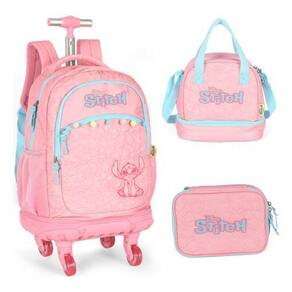 Kit Escolar Mochila com 04 Rodinhas Duplas com giros de 360º + Lancheira Térmica e Estojo, com compartimento para Notebook. O carrinho é feito em alumínio e as quatro rodinhas possuem giro 360, proporcionado leveza e facilidade ao transporte. O puxador é em forma de T, com botão para regular a altura. Ela também pode ser Utilizado nas costas pois possui alças ajustáveis e macias que se adaptam ao corpo. Vem com alça de mão fixa. Além de Contar com a novidade desse ano, o borrachão na parte da base que proporciona mais durabilidade e proteção do produto. A mochila é bastante espaçosa, perfeita para acomodar livros, ficheiros, cadernos e agenda. Na parte interna são duas divisões, com um compartimento para notebook. Os compartimentos são fechados por zíper. - Carrinho em alumínio com puxador e rodinhas; - Alça de costas acolchoada; - Alça de mão reforçada; - Mochila super leve e resistente; - Rodinhas Duplas Giros 360 - Medidas: 45x34x22 cm AxLxP Bolsa Lancheira Térmica, super-resistente; A lancheira é bastante espaçosa, perfeita para colocar potes com refeições e sanduíches, garrafas de água ou suco e frutas. Ideal para crianças e adolescentes levarem à escola ou adultos levarem para o trabalho, academia ou passeios ao ar livre. A lancheira contém uma alça regulável, que pode ser ajustada ou retirada quando necessário. Possui elástico na parte de trás, para acoplar em mochilas de carrinho. - Lancheira térmica super leve e resistente. - Alça regulável, com opção de retirada. - Fechamento em zíper. - Medidas: 25x23x15 cm AxCxL - Não acompanha potinho e garrafa. Estojo 100 Pens: MEDIDAS: 21x15x6cm de 6 meses contra defeito de fabricação Dicas e Cuidados; Proteja os objetos pontiagudos ou cortantes evitando o contato direto com o produto. Guarde o produto e um local seco, fresco e arejado, para evitar a proliferação de fungos que podem danificar o produto. Para Limpeza, use apenas água morna e sabão neutro nas partes metálicas somente uma flanela seca. Nunca aplique produtos abrasivos, solventes ou quaisquer agentes químicos. Para secagem, Utilize apenas pano seco. Não exponha ao sol e altas temperaturas por um período de tempo prolongado. Apare sempre os fios soltos do tecido, para que eles não se prendam no zíper. Duvida Faça-nos uma pergunta :