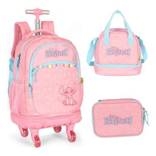 Kit Escolar Mochila com 04 Rodinhas Duplas com giros de 360º + Lancheira Térmica e Estojo, com compartimento para Notebook. O carrinho é feito em alumínio e as quatro rodinhas possuem giro 360, proporcionado leveza e facilidade ao transporte. O puxador é em forma de T, com botão para regular a altura. Ela também pode ser Utilizado nas costas pois possui alças ajustáveis e macias que se adaptam ao corpo. Vem com alça de mão fixa. Além de Contar com a novidade desse ano, o borrachão na parte da base que proporciona mais durabilidade e proteção do produto. A mochila é bastante espaçosa, perfeita para acomodar livros, ficheiros, cadernos e agenda. Na parte interna são duas divisões, com um compartimento para notebook. Os compartimentos são fechados por zíper. - Carrinho em alumínio com puxador e rodinhas; - Alça de costas acolchoada; - Alça de mão reforçada; - Mochila super leve e resistente; - Rodinhas Duplas Giros 360 - Medidas: 45x34x22 cm AxLxP Bolsa Lancheira Térmica, super-resistente; A lancheira é bastante espaçosa, perfeita para colocar potes com refeições e sanduíches, garrafas de água ou suco e frutas. Ideal para crianças e adolescentes levarem à escola ou adultos levarem para o trabalho, academia ou passeios ao ar livre. A lancheira contém uma alça regulável, que pode ser ajustada ou retirada quando necessário. Possui elástico na parte de trás, para acoplar em mochilas de carrinho. - Lancheira térmica super leve e resistente. - Alça regulável, com opção de retirada. - Fechamento em zíper. - Medidas: 25x23x15 cm AxCxL - Não acompanha potinho e garrafa. Estojo 100 Pens: MEDIDAS: 21x15x6cm de 6 meses contra defeito de fabricação Dicas e Cuidados; Proteja os objetos pontiagudos ou cortantes evitando o contato direto com o produto. Guarde o produto e um local seco, fresco e arejado, para evitar a proliferação de fungos que podem danificar o produto. Para Limpeza, use apenas água morna e sabão neutro nas partes metálicas somente uma flanela seca. Nunca aplique produtos abrasivos, solventes ou quaisquer agentes químicos. Para secagem, Utilize apenas pano seco. Não exponha ao sol e altas temperaturas por um período de tempo prolongado. Apare sempre os fios soltos do tecido, para que eles não se prendam no zíper. Duvida Faça-nos uma pergunta : Ean: 6926845717306