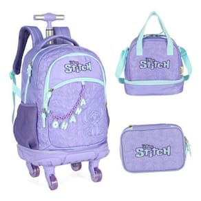 Kit Escolar Mochila com 04 Rodinhas Duplas com giros de 360º + Lancheira Térmica e Estojo, com compartimento para Notebook. O carrinho é feito em alumínio e as quatro rodinhas possuem giro 360, proporcionado leveza e facilidade ao transporte. O puxador é em forma de T, com botão para regular a altura. Ela também pode ser Utilizado nas costas pois possui alças ajustáveis e macias que se adaptam ao corpo. Vem com alça de mão fixa. Além de Contar com a novidade desse ano, o borrachão na parte da base que proporciona mais durabilidade e proteção do produto. A mochila é bastante espaçosa, perfeita para acomodar livros, ficheiros, cadernos e agenda. Na parte interna são duas divisões, com um compartimento para notebook. Os compartimentos são fechados por zíper. - Carrinho em alumínio com puxador e rodinhas; - Alça de costas acolchoada; - Alça de mão reforçada; - Mochila super leve e resistente; - Rodinhas Duplas Giros 360 - Medidas: 45x34x22 cm AxLxP Bolsa Lancheira Térmica, super-resistente; A lancheira é bastante espaçosa, perfeita para colocar potes com refeições e sanduíches, garrafas de água ou suco e frutas. Ideal para crianças e adolescentes levarem à escola ou adultos levarem para o trabalho, academia ou passeios ao ar livre. A lancheira contém uma alça regulável, que pode ser ajustada ou retirada quando necessário. Possui elástico na parte de trás, para acoplar em mochilas de carrinho. - Lancheira térmica super leve e resistente. - Alça regulável, com opção de retirada. - Fechamento em zíper. - Medidas: 25x23x15 cm AxCxL - Não acompanha potinho e garrafa. Estojo 100 Pens: MEDIDAS: 21x15x6cm de 6 meses contra defeito de fabricação Dicas e Cuidados; Proteja os objetos pontiagudos ou cortantes evitando o contato direto com o produto. Guarde o produto e um local seco, fresco e arejado, para evitar a proliferação de fungos que podem danificar o produto. Para Limpeza, use apenas água morna e sabão neutro nas partes metálicas somente uma flanela seca. Nunca aplique produtos abrasivos, solventes ou quaisquer agentes químicos. Para secagem, Utilize apenas pano seco. Não exponha ao sol e altas temperaturas por um período de tempo prolongado. Apare sempre os fios soltos do tecido, para que eles não se prendam no zíper. Duvida Faça-nos uma pergunta : Marca: Não Informado