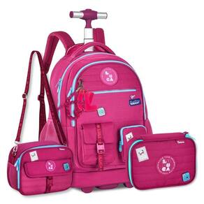 Kit Mochila de Carrinho Luluca LU24634 + Lancheira Térmica LU24637 + Estojo Box LU24640: Estilo, Praticidade e Qualidade em Cada Detalhe Se você ou sua filha são fãs da Luluca e buscam uma mochila que seja um reflexo perfeito de estilo, organização e funcionalidade, a Mochila LU24634 é a escolha ideal Com design encantador e qualidade premium, ela oferece a versatilidade que você precisa para o dia a dia escolar ou atividades diversas. A Mochila LU24634 pode ser usada tanto no carrinho quanto nas costas, adaptando-se a qualquer necessidade com conforto e praticidade. Para uso no carrinho, suas 2 rodinhas traseiras e base de apoio frontal garantem estabilidade e movimentação fácil. Além disso, o bolso para guardar as alças mantém tudo organizado. Ao usá-la nas costas, suas alças ajustáveis e confortáveis proporcionam leveza e comodidade, enquanto a proteção inteligente cobre as rodinhas para evitar sujeira nas roupas. Há ainda um bolso exclusivo para guardar o puxador metálico quando não estiver em uso. Seu interior é um exemplo de organização e funcionalidade. O compartimento principal amplo inclui espaço acolchoado especial para notebooks, mantendo seus itens mais valiosos protegidos. Os dois compartimentos frontais com zíper são ideais para itens essenciais, enquanto dois bolsos adicionais - um com zíper e outro com botão magnético - oferecem ainda mais opções para guardar tudo o que você precisa. E, claro, os bolsos laterais telados são perfeitos para garrafas ou pequenos objetos de fácil acesso. O zíper bicolor e o chaveiro incrível de corda e outros de acrílico completam o charme deste modelo que é simplesmente irresistível. Confeccionada em nylon com matelassê, a mochila une sofisticação e durabilidade. Seus cadarços logados acetinados, pins de metal e etiqueta de borracha são detalhes únicos que destacam sua autenticidade e estilo exclusivo. Dimensões aproximadas: 48x35x19 cm. Lancheira LU24637 Estilo e funcionalidade em um único item. Com design encantador, é perfeita para conservar os alimentos organizados e fresquinhos. Compartimento principal térmico, garantindo que os alimentos fiquem na temperatura ideal. Bolso frontal com fechamento por fivela moderna e lateral telado. Alça de ombro ajustável para conforto no transporte. Dimensões aproximadas: 20x24x14 cm. Estojo Box LU24640 Compacto e funcional, ideal para organizar seus materiais escolares com eficiência. Possui: Espaço interno com elásticos para até 36 lápis, além de um estojo adicional com zíper. Dimensões aproximadas: 22x16x06 cm.