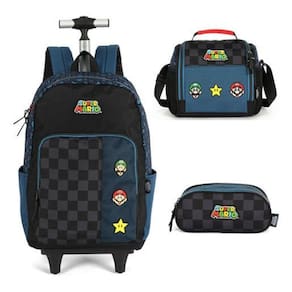 Conte com a facilidade das rodinhas , é muito mais fácil para sua filha transportar a mochila, sem contar que já vem acompanhado com o estojo e lancheira térmica Descrição da mochila com rodinhas - amplo compartimento principal para melhor organização dos cadernos, livros e apostilas; - 1 compartimentos frontais com fechamento em zíper, para pequenos objetos; - dispõe de alça de mão e alça retrátil reforçada para uma melhor locomoção; - alças acolchoadas e reguláveis caso queira transportar no ombro; - puxadores dos zíperes em borracha; - logo emborrachado super mario; - apliques emborrachados; - bolso frontal telado - material: 100% poliéster e forro 100% poliéster. Tamanho/peso da mochila: - altura: 45 cm - largura: 31 cm - profundidade: 16 cm - peso: 1,650 kg Lancheira térmica; As lancheiras são leves, fáceis de limpar e transportar, combinam com qualquer criança e ainda cabem tudo que precisam para a hora do lanche. - alça de mão e alças para carregar no ombro; - fechamento em zíper Tamanho/peso da lancheira; - altura: 23 cm - largura: 20 cm - profundidade: 15 cm - peso: 200 gramas Obs.: não acompanha potinho e garrafinha. Estojo; Lindo estojo com divisórias interna para melhor organização do seu material, ideal para o dia a dia na escola. - altura: 8 cm - largura: 22 cm - profundidade: 10 cm Dicas e cuidados; Proteja os objetos pontiagudos ou cortantes evitando o contato direto com o produto. Guarde o produto e um local seco, fresco e arejado, para evitar a proliferação de fungos que podem danificar o produto. Para limpeza, use apenas água morna e sabão neutro nas partes metálicas somente uma flanela seca. Nunca aplique produtos abrasivos, solventes ou quaisquer agentes químicos. Para secagem, utilize apenas pano seco. Não exponha ao sol e altas temperaturas por um período de tempo prolongado. Apare sempre os fios soltos do tecido, para que eles não se prendam no zíper. Duvida Faça-nos uma pergunta : Marca: Não Informado Ean: 6926845715210