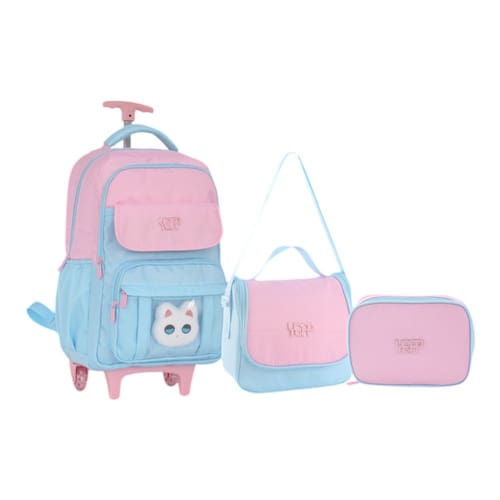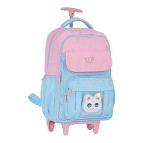 A mochila possui amplo espaço interno, vários compartimentos e um design funcional pensado para facilitar a rotina. O destaque fica para o bolso frontal com vinil transparente e a pelúcia decorativa destacável, que torna o modelo ainda mais único.