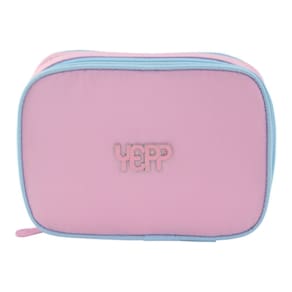 Estojo espaçoso com compartimento único, ideal para guardar lápis, canetas e materiais escolares.