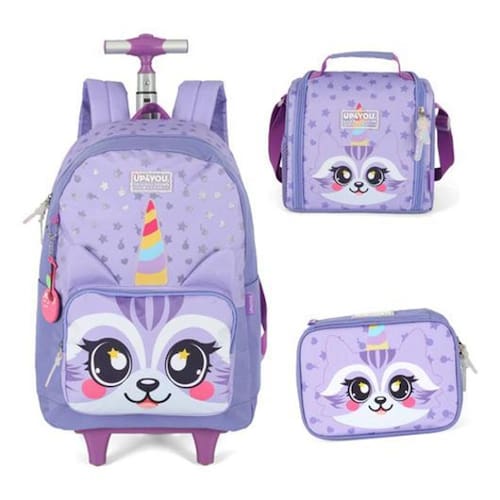 Lançamento escolar volta as aulas 2026 Conte com a facilidade das rodinhas , é muito mais fácil para sua filha o transportar a mochila, sem contar que já vem acompanhado com lancheira e estojo. Descrição da mochila com rodinhas; - amplo compartimento principal para melhor organização dos cadernos, livros e apostilas; - 2 compartimentos frontais com fechamento em zíper, para pequenos objetos; - dispõe de alça de mão e alça retrátil reforçada para uma melhor locomoção; - alças acolchoadas e reguláveis caso queira transportar no ombro; - puxadores dos zíperes em borracha; - logo emborrachado transparente com glitter - chaveiro personalizado - orelhas 3d - lacinho de verdade no modelo de cor verde - material: 100% poliéster e forro 100% poliéster. Tamanho/peso da mochila; - altura: 46 cm - largura: 32 cm - profundidade: 15 cm - peso: 1,500 kg Estojo; Lindo estojo com divisórias interna para melhor organização do seu material, ideal para o dia a dia na escola. - altura: 15 cm - largura: 22 cm - profundidade: 6 cm Lancheira térmica; As lancheiras são leves, fáceis de limpar e transportar, combinam com qualquer criança e ainda cabem tudo que precisam para a hora do lanche. - alça de mão e alças para carregar no ombro; - fechamento em zíper e tampa com fechamento em fita dupla aderente; Tamanho/peso da lancheira; - altura: 23 cm - largura: 20 cm - profundidade: 15 cm - peso: 200 gramas Obs.: não acompanha potinho e garrafinha. de 6 meses contra defeitos de fabricação. Dicas e cuidados; Proteja os objetos pontiagudos ou cortantes evitando o contato direto com o produto. Guarde o produto e um local seco, fresco e arejado, para evitar a proliferação de fungos que podem danificar o produto. Para limpeza, use apenas água morna e sabão neutro nas partes metálicas somente uma flanela seca. Nunca aplique produtos abrasivos, solventes ou quaisquer agentes químicos. Para secagem, utilize apenas pano seco. Não exponha ao sol e altas temperaturas por um período de tempo prolongado. Apare sempre os fios soltos do tecido, para que eles não se prendam no zíper. Duvida Faça-nos uma pergunta : Marca: Não Informado