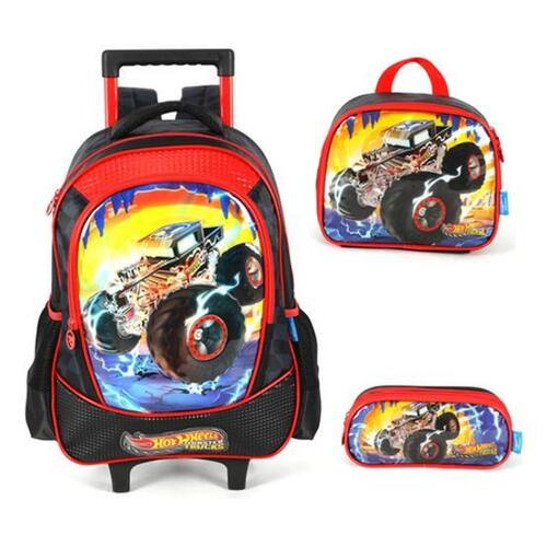 Kit Mochila Rodinhas Hot Wheels Monster Trucks