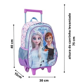 Kit Mochila De Rodinhas Infantil + Lancheira + Estojo Frozen Cor: Lilás Tamanho: único Genero: Unissex O Kit Escolar Disney Frozen Elsa e Anna, licenciado oficial, oferece um conjunto completo com mochila de rodinhas, lancheira térmica e estojo de 2 compartimentos, ideal para fãs que desejam levar a magia de Frozen para a escola. A mochila é espaçosa e prática, com rodinhas suaves e puxador ajustável, enquanto a lancheira térmica preserva os lanches frescos e saborosos. O estojo com dois compartimentos organiza materiais com charme e funcionalidade. Perfeito para transformar a rotina escolar em uma verdadeira aventura encantada.