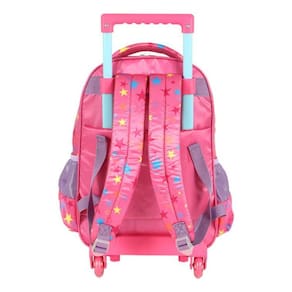 Descrição: Esse lindo kit escolar barbie vai fazer sucesso entre as meninas. Esse modelo conta com 1 compartimento principal e mais 1 frontal além de dois bolsos laterais para colocar a garrafa. Possui 2 rodinhas de silicone e 2 apoiadores frontais para mantê-la em pé. Sua haste metálica é retrátil. Informações mochila com rodinhas; Medidas: altura: 41cm x largura: 30cm x profundidade: 15cm Peso: 1,500kg Capacidade: 17l Estampa em pu Chaveiro personalizado Personagem em alto relevo modelo da cor azul Logo em alto relevo modelo da cor rosa Tecido texturizado modelo da cor rosa Altura da alça retrátil fechada: 45cm Altura da alça retrátil aberta: 73cm Informações lancheira térmica; Medidas: altura: 19cm x largura: 23cm x profundidade: 10cm Peso: 300gr Capacidade: 4,370l Material: 30% pvc 70% poliéster Obs: não acompanha garrafa/potinho Informações estojo; Medidas: altura: 15cm x largura: 21cm x profundidade: 6cm Peso: 100gr Material: 30% pvc 70% poliéster de 6 meses contra defeitos de fabricação. Dicas e cuidados; Proteja os objetos pontiagudos ou cortantes evitando o contato direto com o produto. Guarde o produto e um local seco, fresco e arejado, para evitar a proliferação de fungos que podem danificar o produto. Para limpeza, use apenas água morna e sabão neutro nas partes metálicas somente uma flanela seca. Nunca aplique produtos abrasivos, solventes ou quaisquer agentes químicos. Para secagem, utilize apenas pano seco. Não exponha ao sol e altas temperaturas por um período de tempo prolongado. Apare sempre os fios soltos do tecido, para que eles não se prendam no zíper. Duvida faça-nos uma pergunta :