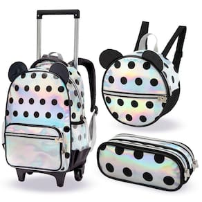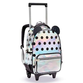 Deixe o aprendizado ainda mais divertido e cheio de estilo com o Kit Mochila Rodinhas Bolinha Orelhinas Lancheira Estojo Holográfico Escolar Denlex. O conjunto perfeito para quem adora brilhar e levar todo o charme da moda escolar para a rotina!