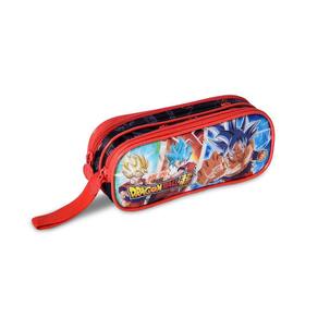 Contém: 01 un - Mochila de Rodinhas Escolar Dragon Ball Azul - Ref.: DZ3587K. 01 un - Lancheira Térmica Escolar Dragon Ball Super Goku Azul. 01 un - Estojo Duplo Dragon Ball Super Azul e coral - Clio.