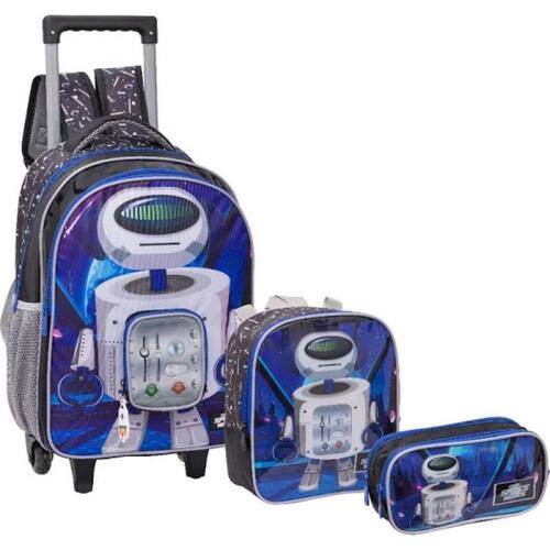 Kit Mochila Rodinhas Astronauta Lancheira Estojo Infantil Escolar Space Wars Yepp Prepare os pequenos para uma jornada intergaláctica com o Kit Mochila Rodinhas Space Wars da Yepp. Combinando praticidade, estilo e resistência, este conjunto é o companheiro perfeito para os pequenos exploradores que sonham com aventuras no espaço. Disponível nas cores azul e preto, o kit inclui: Mochila de Rodinhas - Com design de 16 polegadas, perfeita para crianças em idade escolar. - Medidas: 40,5x28,5x12 cm. - Material resistente em poliéster + PVC. - Rodinhas de silicone e carrinho embutido para transporte fácil e suave. - Compartimento principal espaçoso, dois bolsos frontais com zíper e dois bolsos laterais para garrafas. - Estampa incrível de robô intergaláctico para despertar a imaginação. Lancheira Térmica - Medidas: 23x22x10,5 cm. - Fabricada com poliéster + PVC e revestimento térmico no compartimento principal para manter os alimentos frescos. - Alça ajustável e fita para prender no carrinho da mochila. - Prática, funcional e com design que combina com o tema espacial. Estojo Duplo - Medidas: 10,5x22,5x8 cm. - Composto por poliéster + PVC, oferecendo durabilidade e fácil limpeza. - Duas divisórias para organizar lápis, canetas e outros itens essenciais. Esse kit transforma o dia a dia escolar em uma aventura cheia de estilo e funcionalidade. Ideal para manter os pertences organizados enquanto estimula a criatividade e o espírito explorador das crianças. A resistência e o acabamento de alta qualidade garantem que o kit acompanhará os pequenos em todas as missões espaciais e desafios diários. Escolha o Kit Mochila Rodinhas Space Wars e prepare sua criança para decolar rumo a novas descobertas