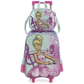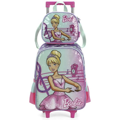KIT MOCHILA DE RODINHAS E LANCHEIRA LUXCEL BARBIE