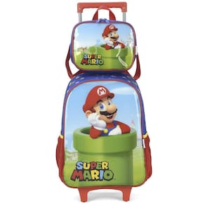 KIT MOCHILA DE RODINHAS E LANCHEIRA LUXCEL SUPER MARIO