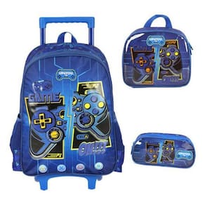 Kit Mochila Rodinhas Menino Controle Vídeo Game Em Relevo