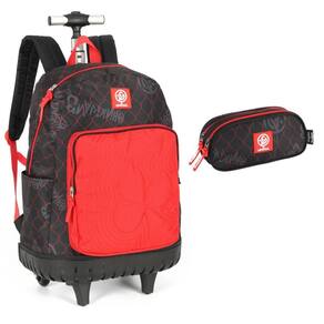 Kit mochila rodinhas oficial enaldinho luxcel 47512 vermelho Kit mochila de rodinhas e estojo duplo oficial enaldinho - luxcel mc47512up vermelho