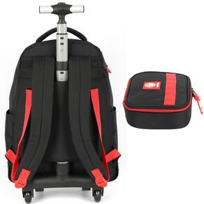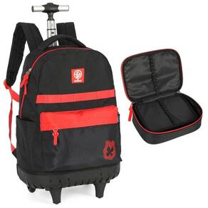 Características: Marca: luxcel Linha: enaldinho Cor: preto Cód.: mc47512ktpt Material: poliéster Conteúdo do kit: 1 mochila de rodinhas e 1 estojo box