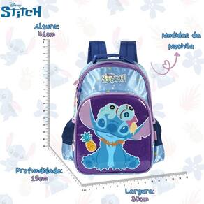 Kit Mochila Costas E Estojo Stitch Disney Meninas Escolar - Luxcel O Kit Mochila Costas e Estojo Triplo Stitch Disney é a escolha perfeita para as meninas que amam praticidade e estilo. Com design encantador inspirado no personagem Stitch, a mochila oferece espaço ideal para organizar materiais escolares do dia a dia, além de bolsos laterais para garrafinha. O estojo triplo complementa o kit, garantindo mais praticidade para guardar lápis, canetas e acessórios. Feito com material resistente e de fácil limpeza, é ideal para escola, passeio ou atividades do dia a dia. Características Mochila: - Pega de Transporte Manual - Bolso Lateral Telado - Bolso Frontal Utilitário - Zíper com Puxadores Personalizados - Personagem em PVC transparente com fundo glitter PVC - Forro 100% em Poliéster - Logo peluciado na mochila cor turquesa - Logo holográfico na mochila cor violeta - Chaveiro personalizado Características Estojo: - 3 compartimentos - Forro interno em Poliéster - Detalhes em Glitter - Material acetinado - Zíper com puxadores personalizados e coloridos Especificações Mochila: - Marca: Luxcel - Composição: 70% Poliéster e 30% PVC - Material: Cetim - Medidas Aprox. axlxp : 41cm x 30cm x 15cm - Tema: Stitch - Cores: Turquesa e Violeta - Capacidade Aprox. litros : 18 litros - Polegadas da mochila: 16 Especificações Estojo: - Marca: Luxcel - Material: 70% Poliéster e 30% PVC - Medidas Aprox. axlxp : 10cm x 22cm x 8cm - Tema: Stitch - Cor: Violeta, Turquesa - Capacidade Aprox. litros : 1,5 Litros Conteúdo da Embalagem: Is42401sc - 1x Mochila de Costas Stitch Disney Ei42405sc - 1x Estojo Triplo Stitch Disney As cores podem variar entre as imagens mostradas acima e o produto. Imagens meramente ilustrativas. Todas as informações divulgadas são de responsabilidade exclusiva do fabricante. de 90 dias contra defeito de fabricação. Marca: Não Informado