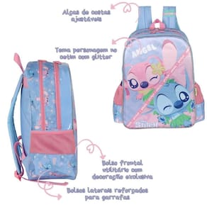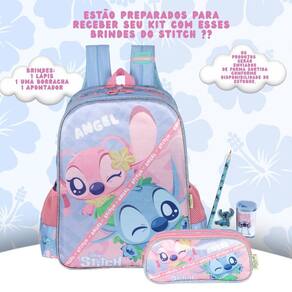 Kit Mochila Stitch Costas E Estojo Duplo Meninas Escolar - Luxcel O Kit Mochila de Costas Stitch E Estojo Duplo é perfeito para o dia a dia escolar e passeios, o kit traz mochila espaçosa. Alças ajustáveis e resistentes, junto com estojo duplo para organizar os materiais. Com estampa fofa do Stitch, é ideal para meninas que buscam praticidade, conforto e muito estilo, perfeito para acompanhar a rotina escolar ou momentos de lazer. Fabricado com material resistente, é leve, compacto e fácil de carregar dentro da mochila. Características Mochila: - Pega de Transporte Manual - Bolso Lateral Telado - Bolso Frontal Utilitário - Zíper com Puxadores Personalizados - Frente em poliéster e personagem em aplique de PVC mochila na cor azul e estampa no cetim com glitter localizado mochila na cor roxa - Forro 100% em Poliéster Características Estojo: - 2 compartimentos - Forro interno em Poliéster - Estampa com Personagem Temático em PVC - Zíper com puxadores personalizados Especificações Mochila: - Marca: Luxcel - Composição: 70% Poliéster e 30% PVC - Material: Cetim - Medidas Aprox. axlxp : 41cm x 31cm x 16cm - Tema: Stitch - Cor: Azul e Roxo - Capacidade Aprox. litros : 20 litros - Polegadas da mochila: 16 Especificações Estojo: - Marca: Luxcel - Material: 70% Poliéster e 30% Poliuretano - Medidas Aprox. axlxp : 10cm x 22cm x 6cm - Tema: Stitch - Cor: Azul, Roxo - Capacidade Aprox. litros : 1,3 Litros Conteúdo da Embalagem: Is42391sc - 1x Mochila de Costas Stitch Disney Luxcel Ei42394sc - 1x Estojo Duplo Stitch Disney Luxcel 31324 - 1x Lápis HB Stitch 31353 - 1x Apontador com Depósito 31345 - 1x Borracha Stitch As cores podem variar entre as imagens mostradas acima e o produto. Imagens meramente ilustrativas. Todas as informações divulgadas são de responsabilidade exclusiva do fabricante. de 90 dias contra defeito de fabricação. Marca: Não Informado