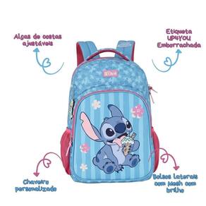 Kit Mochila Stitch Costas E Estojo Triplo Meninas Escolar