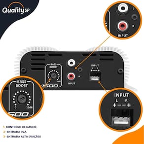 O amplificador TL 1500 é desenvolvido com a mais alta tecnologia e desempenho para sistemas de som automotivo. É estéreo, com potência máxima de 190Watts RMS com impedância de 2 OHMS com 2 canais de 95W RMS estéreo e potência máxima de 200W RMS com impedância de 4 OHMS com 1 canal de 200Watts RMS SUB. O TL 1500 é FULL RANGE tocando todas as frequências na medida certa para você.