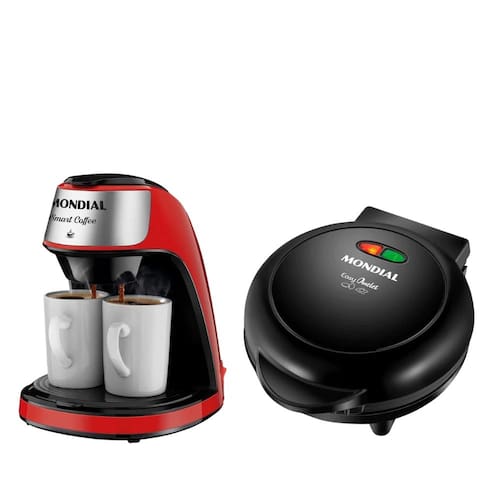 Kit Mondial Cafeteira 2 Xícaras Smart Coffee + Omeleteira Elétrica Easy Omelet Antiaderente 800W - 220V