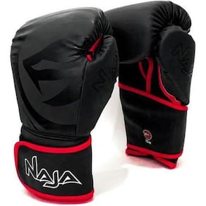 Kit Muay Thai Boxe Naja Luva Preta E Vermelha 12 Oz